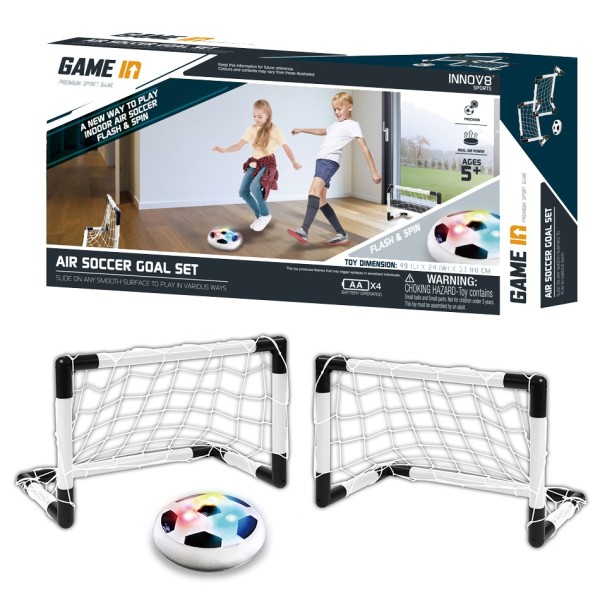 Este divertido set de fútbol indoor incluye dos porterías y una pelota flotante con luces LED que se desliza suavemente sobre cualquier superficie lisa, ofreciendo horas de diversión segura dentro de casa. Medidas del producto: 49 x 33 x 24 cm. Funciona con: 4 pilas AA (no incluidas).