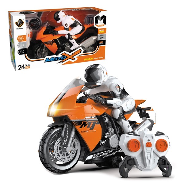 Vive la emoción de la velocidad con esta moto radiocontrol de diseño deportivo, luces realistas. Ideal para niños a partir de 3 años.