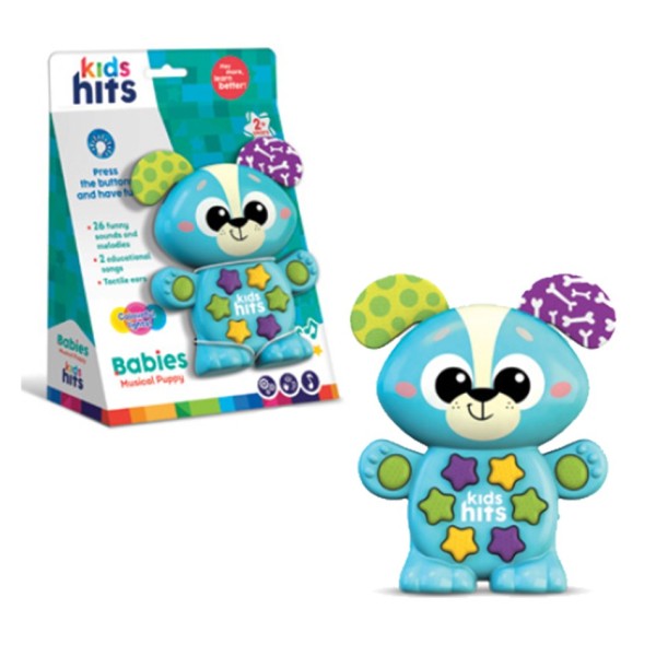 Este perrito musical está diseñado para estimular los sentidos de los más pequeños con luces, sonidos y canciones. Medidas: 15 x 14 x 3 cm.