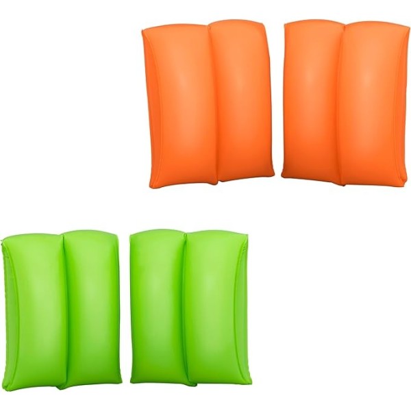 Manguitos hinchables infantiles en colores surtidos y diseño liso, ideales para ayudar a los más pequeños a ganar confianza y estabilidad en el agua. Con unas dimensiones de 25 x 20 cm, ofrecen un ajuste cómodo y seguro para actividades en piscina o playa.