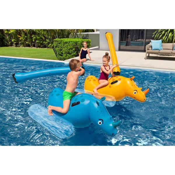 El juego acuático hinchable es perfecto para que los niños disfruten de momentos llenos de diversión en la piscina. Con un divertido diseño de rinocerontes, permite a dos jugadores subirse y enfrentarse en un emocionante duelo sobre el agua. Medidas aproximadas: 153 x 77 cm.