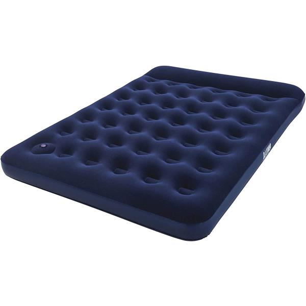 Colchón hinchable con hinchador de pie integrado. Su medida es de 203 x 152 x 22 centímetros.