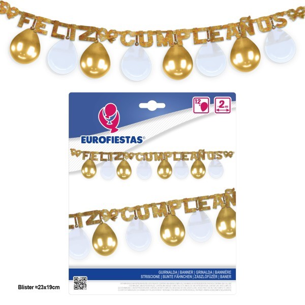 GUIRNALDA BANDERIN 2M FELIZ CUMPLEAÑOS ORO/BLANCO