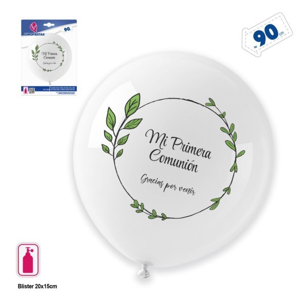 GLOBO 90CM BLANCO COMUNION MARCO HOJA