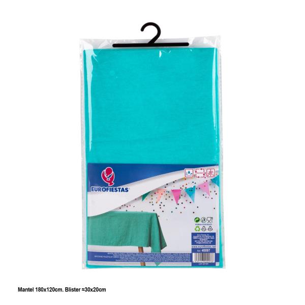 MANTEL PLASTICO TEXTIL 180X120CM VERDE AGUA