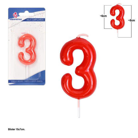 Vela cumpleaños número 3 color rojo de 8 cm.