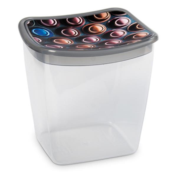 Tarro de plástico para cápsulas de café. Modelo Tokyo. medidas 26x26x12cm. Capacidad 1,1 litro. Disponible en 3 modelos surtidos.