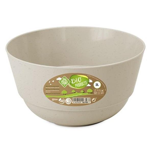 Bol redondo fabricado en plástico biodegradable libre de BPA más respetuoso con el medio ambiente. Capacidad: 2 litros.