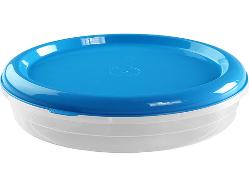 Fiambrera de plástico redonda para tortilla. Apta para microoondas. Capacidad 2.1 litros. Disponible en 3 colores. Medidas 23.5x8cm.