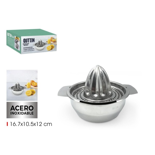 Prepara tus zumos de forma rápida, limpia y sin esfuerzo con este exprimidor manual fabricado en acero inoxidable de alta calidad, perfecto para limones, naranjas, limas y otros cítricos. Medidas: 16,7 × 10,5 × 12 cm.