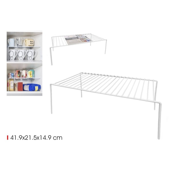 Aprovecha al máximo el espacio de tus armarios con este estante organizador metálico, ideal para crear niveles adicionales y mantener la cocina siempre ordenada. Medidas: 41,9 × 21,5 × 14,9 cm.