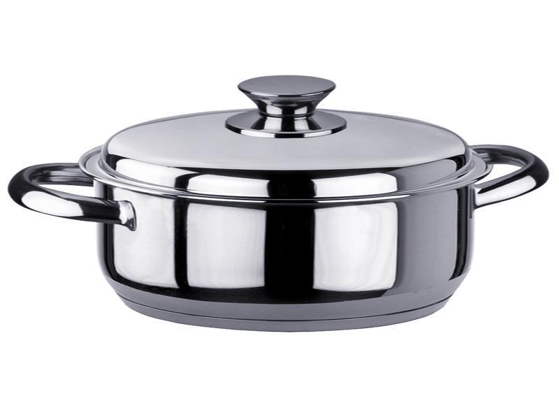 Cacerola de acero inoxidable de 18/10 con tapa. Medidas: 20 cm. de diámetro y 8,5 cm de altura. Capacidad para 2,5 litros. Apta para todo tipo de cocinas.