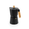 Cafetera italiana de 9 tazas con un elegante diseño fabricada en aluminio de color negro mate con mango y pomo en madera de haya. Está diseñada para todo tipo de cocinas y no incluye agujeros, para aprovechar toda la eficiencia de las placas inductoras.