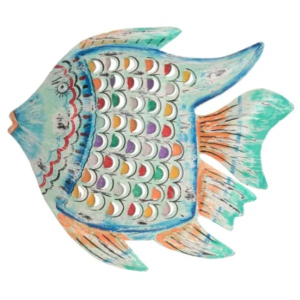Figura de pez decorativa fabricada en hierro, ideal para la pared aportando un toque marinero y colorido a cualquier estancia. Medidas: 37 x 7 x 33 cm.