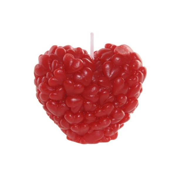 Vela decorativa fabricada en cera de parafina, con un original diseño de corazón formado por pequeños relieves. Medidas: 7x4x6 cm.