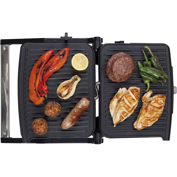 Plancha grill doble Jata de 2000W de potencia y apertura 180º. Recubrimiento antiadherente libre de PFOA.