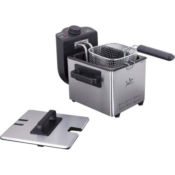 Freidora eléctrica de 1000W de potencia con capacidad de 1,5 litros, cuerpo de acero inoxidable y termostato regulable hasta 190º.