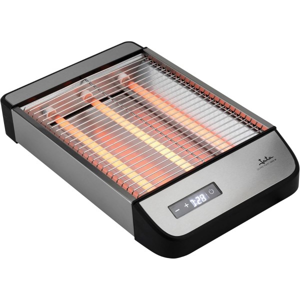 Disfruta de un tostado perfecto con la tostadora horizontal Jata, ideal para todo tipo de pan, bollería o repostería. Gracias a sus 3 barras de cuarzo, ofrece un tostado homogéneo y rápido en toda la superficie de 20 x 23 cm. Potencia de 1000 W, para un tostado rápido y eficiente, y 6 niveles de tostado.