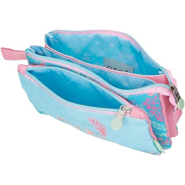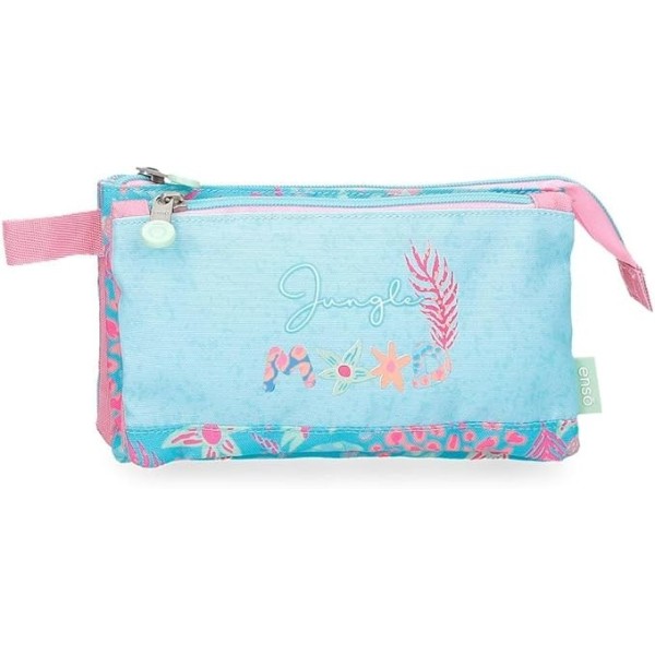 Portatodo fabricado en poliéster resistente. Cuenta con tres compartimentos independientes con cierre de cremallera, perfectos para separar bolígrafos, lápices, rotuladores u otros pequeños accesorios, facilitando el orden y el acceso rápido a cada objeto. Medidas: 22 x 12 x 5 cm.