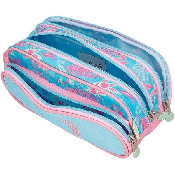 Portatodo práctico y resistente fabricado en poliéster, perfecto para el uso diario escolar. Dispone de tres compartimentos independientes con cierre de cremallera que facilitan la organización y el acceso rápido a todo el material. Medidas: 22 x 10 x 9 cm.