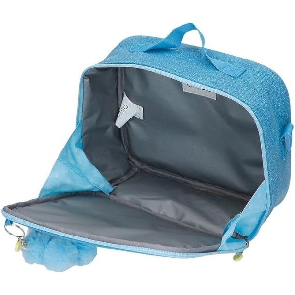 Portamerienda térmica de 25 x 21 x 11 cm fabricada en poliéster, ideal para mantener los alimentos a buena temperatura durante más tiempo. Cuenta con un compartimento principal con cremallera, bolsillo frontal para pequeños accesorios y varias formas de transporte gracias a su asa superior y bandolera ajustable.
