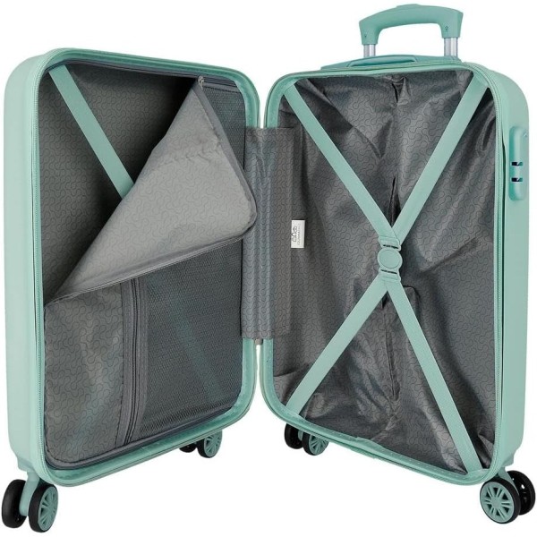 Viaja con comodidad y estilo con esta maleta de cabina de Frozen con medidas 38 x 55 x 20 cm (incluyendo ruedas y asa), perfecta como equipaje de mano. Con una capacidad de 35 litros y un peso ligero de 2,5 kg, está fabricada en ABS resistente. En su interior, ofrece una organización práctica gracias a un compartimento con cremallera y bolsillo lateral, además de gomas elásticas de sujeción para mantener todo en su sitio durante el viaje. Su sistema de cuatro ruedas multidireccionales permite un desplazamiento suave y sin esfuerzo, mientras que el cierre de combinación lateral aporta un extra de seguridad.
