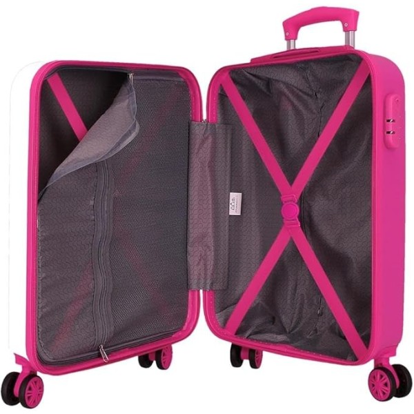 Viaja con comodidad y estilo con esta maleta de cabina de Minnie con medidas 38 x 55 x 20 cm (incluyendo ruedas y asa), perfecta como equipaje de mano. Con una capacidad de 35 litros y un peso ligero de 2,5 kg, está fabricada en ABS resistente. En su interior, ofrece una organización práctica gracias a un compartimento con cremallera y bolsillo lateral, además de gomas elásticas de sujeción para mantener todo en su sitio durante el viaje. Su sistema de cuatro ruedas multidireccionales permite un desplazamiento suave y sin esfuerzo, mientras que el cierre de combinación lateral aporta un extra de seguridad.