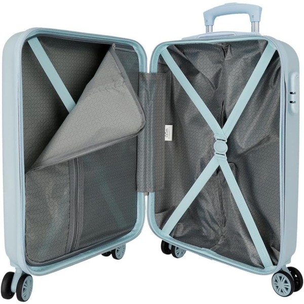 Viaja con comodidad y estilo con esta maleta de cabina de Frozen con medidas 38 x 55 x 20 cm (incluyendo ruedas y asa), perfecta como equipaje de mano. Con una capacidad de 35 litros y un peso ligero de 2,5 kg, está fabricada en ABS resistente. En su interior, ofrece una organización práctica gracias a un compartimento con cremallera y bolsillo lateral, además de gomas elásticas de sujeción para mantener todo en su sitio durante el viaje. Su sistema de cuatro ruedas multidireccionales permite un desplazamiento suave y sin esfuerzo, mientras que el cierre de combinación lateral aporta un extra de seguridad.