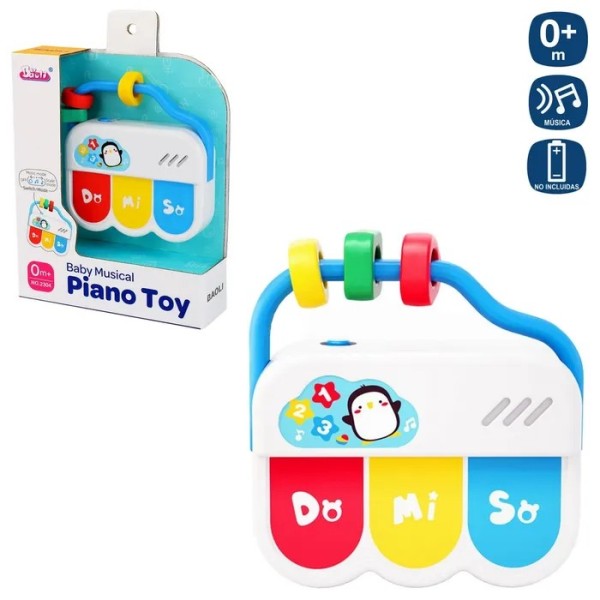 Piano musical perfecto para estimular los sentidos desde los primeros meses de vida. Con teclas de colores que emiten melodías suaves y sonidos musicales.