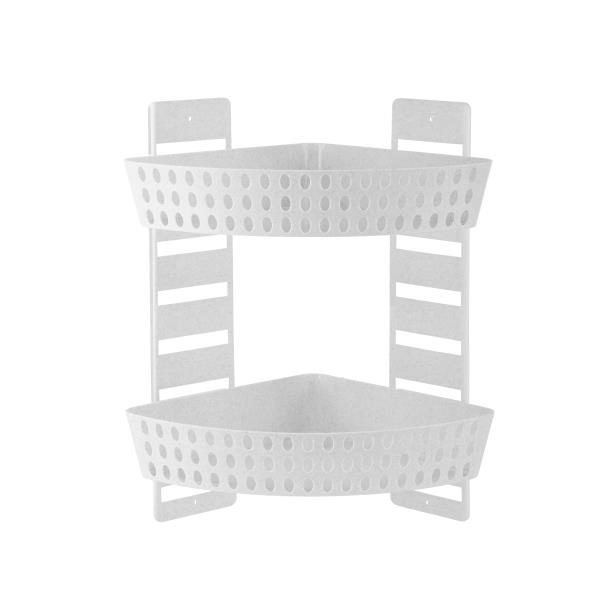 Estantería rinconera de plástico para baño con 2 pisos. Baldas movibles para colocarlas a la altura que se desee. Color: Blanco.
