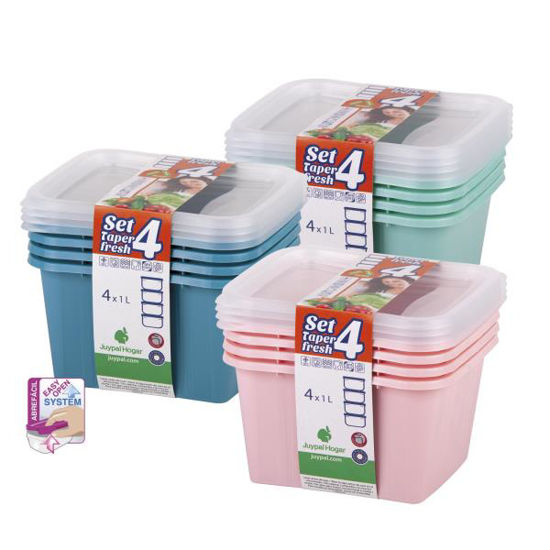 Set de 4 fiambreras fabircadas en plástico resistente libre de BPA y aptas para micoondas y lavavajillas. Disponible en varios colores, indicar modelo deseado en el comentario. Capacidad: 1000 ml.