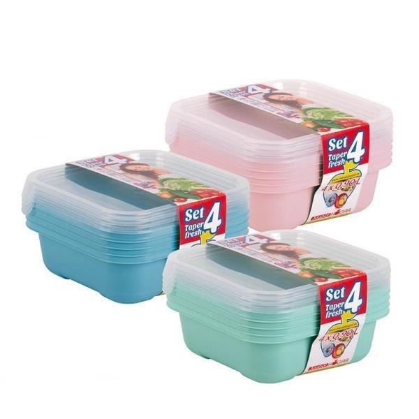 Set de 4 fiambreras de 900 ml de capacidad disponible en 3 colores. Puede indicar el color deseado en el comentario del pedido.