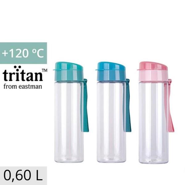 BOTELLA TRITAN 0,60L. TAPÓN VERTEDOR Y CORREA SURTIDA
