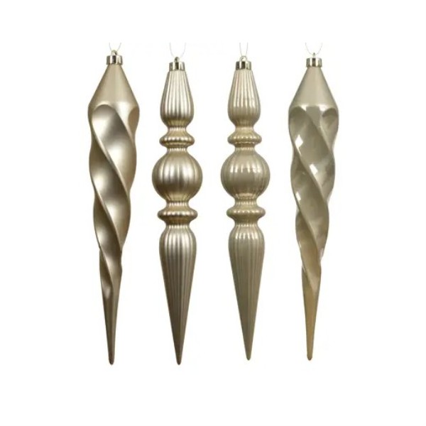 Set de 4 adornos de navidad de 30 cm en color perla con diseño alargado.