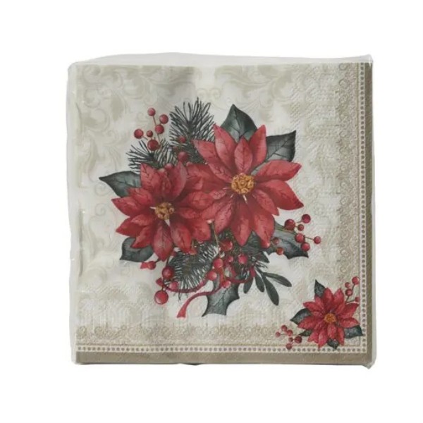 SERVILLETAS DE PAPEL C/ESTAMPADO PONSETIA 33CM
