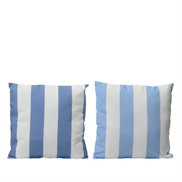 Cojín cuadrado de 45x45 cm con diseño de rayas verticales, disponible en 2 colores surtidos en tonos azul y blanco, ideal para aportar un estilo fresco y marinero a cualquier estancia.