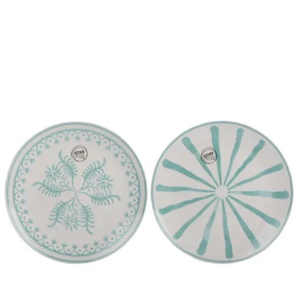 Plato llano de porcelana de 19 cm de diámetro, disponible en dos modelos decorativos en tono azul agua sobre fondo blanco. Su diseño suave y luminoso aporta un estilo fresco y delicado a la mesa, perfecto para el día a día o para ocasiones especiales.