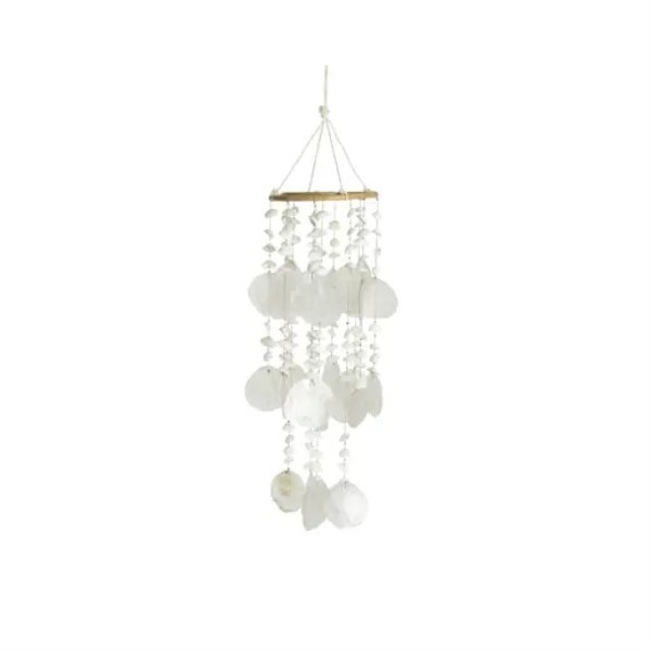 Colgante decorativo de conchas, ideal para aportar un estilo natural y marinero a cualquier espacio. Dimensiones: Diámetro 14 cm x Alto 45 cm.