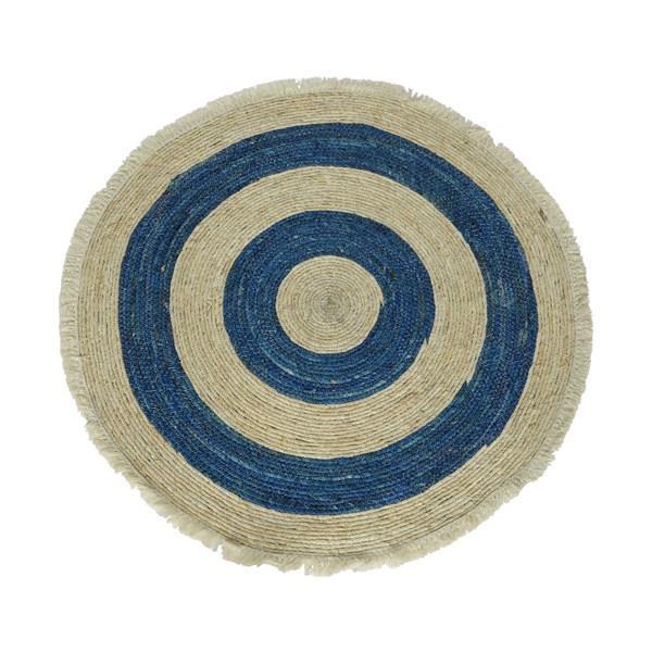 ALFOMBRA REDONDA FIBRA DECORADO EN RAYA AZUL. MEDIDA: 40 CM.