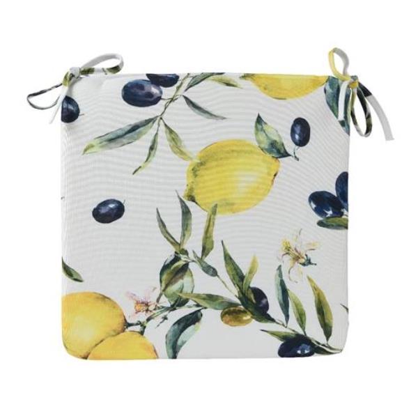 Cojín para silla estampado con limones. Medidas: 40x40 cm.