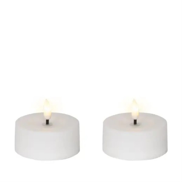 Set de dos velas con luz solar LED, ideales para decorar exteriores como jardines, terrazas o balcones. Funcionan con energía solar, y ofrecen una agradable luz blanca cálida con efecto llama. Medidas de cada vela: 7 cm de diámetro y 3,2 cm de alto.