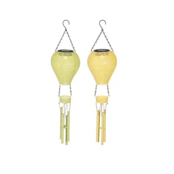 Lámpara solar colgante de metal disponible en surtido de 2 colores. Incorpora luz LED blanco cálido con una duración aproximada de hasta 6 horas tras carga completa. Diseño decorativo con cuerpo calado y cadenas metálicas para colgar, ideal para exterior. Dimensiones: 13 cm de diámetro y 56 cm de altura.