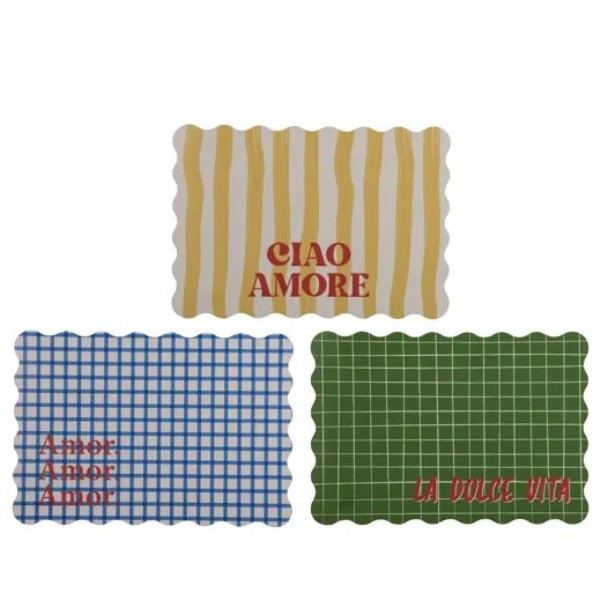 Salvamantel de polipropileno, resistente y fácil de limpiar, ideal para proteger la mesa y aportar un toque decorativo moderno. Modelos surtidos. Dimensiones: 42 x 29,5 cm.