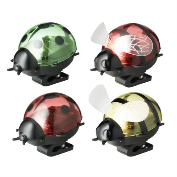 Lámpara solar decorativa con diseño de mariquita, ideal para jardín, terraza o balcón. Funciona con energía solar y se enciende automáticamente al anochecer. Modelos surtidos. Medidas: 8x6,5x6,2 cm.