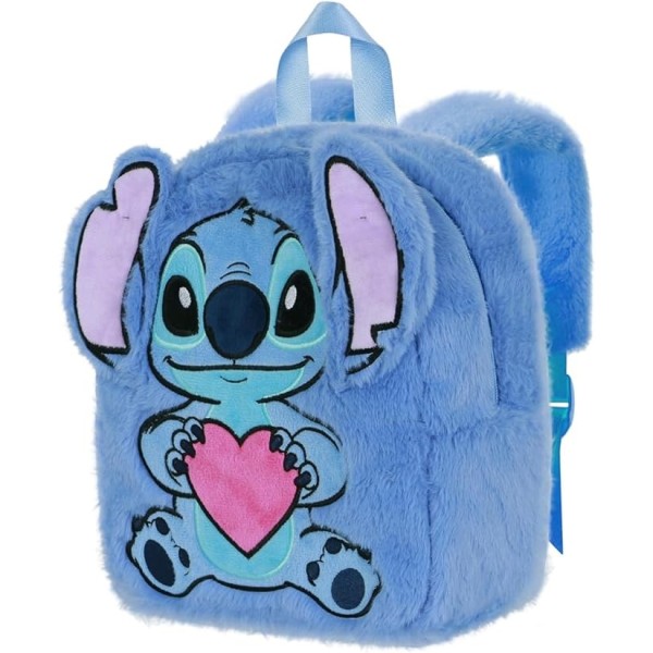 Mochila infantil de peluche suave con diseño frontal en relieve. Cuenta con un compartimento principal con cierre de cremallera y forro interior para mayor protección. Incorpora correas de hombro ajustables y asa superior para un transporte cómodo. Tamaño: 25 x 30 x 15 cm.
