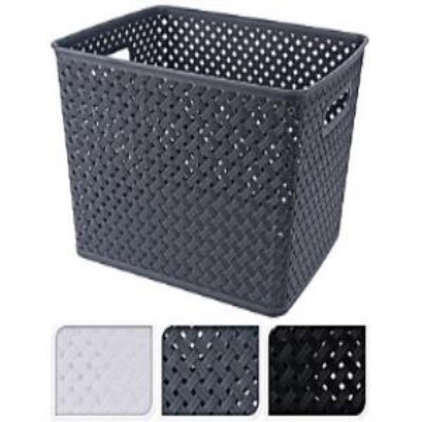 Cesta calada disponible en 3 colores: blanco, gris y negro. Medidas: 35x29x22 cm.