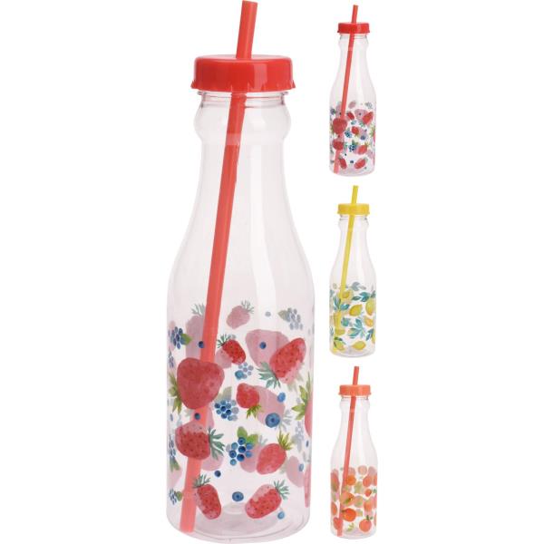 Botella con pajita de plástico libre de BPA de 650 ml de capacidad disponible en varios modelos. Puede indicar el modelo deseado en el comentario del pedido.