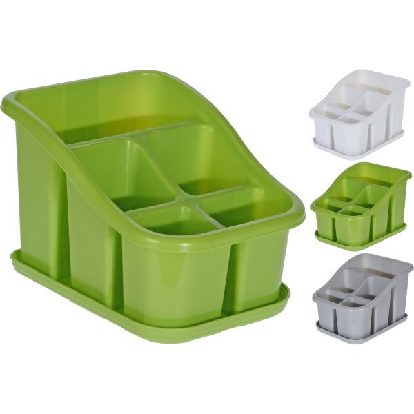 Escurrecubierto fabricado en plástico disponible en varios colores (verde, blanco y gris). Medidas: 15x20x13 cm.
