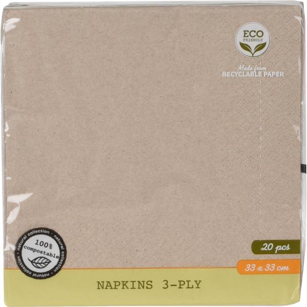 Pack 20 servilletas fabricadas con materiales reciclados. Medida: 33x33 cm.