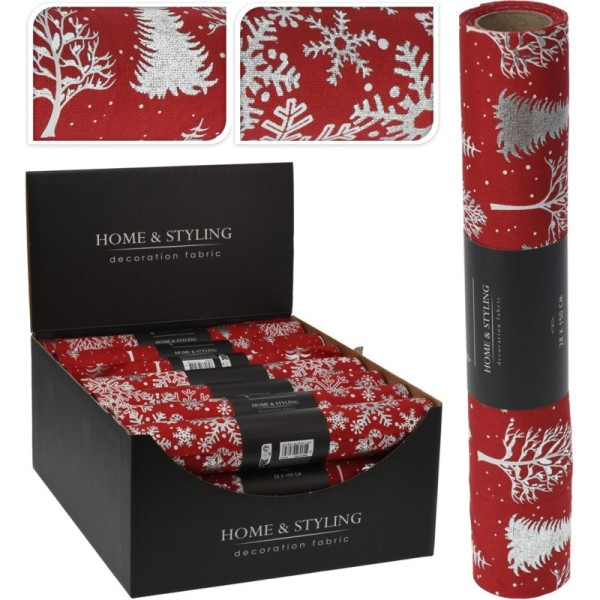 Decora tu mesa con espíritu navideño gracias a este camino de mesa rojo con estampado invernal en blanco. Modelos surtidos. Medidas: 28 x 250 cm.